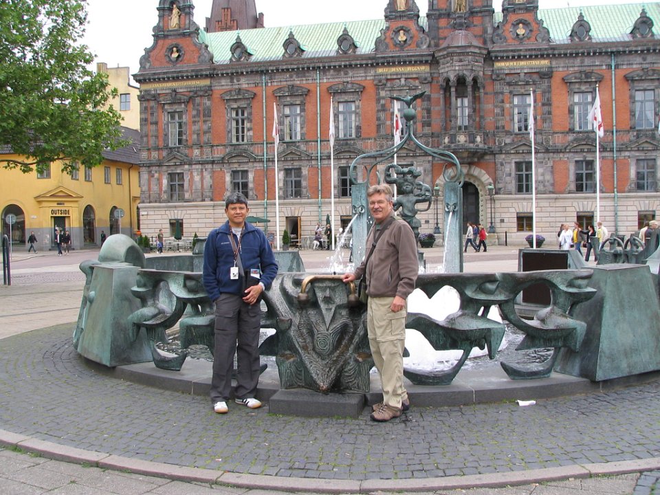 12 Stortoget, Francisco and Bill by fountain in front of City Hall |